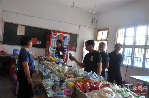 图为检查组正在学校商店检查是否有无“三无产品”。