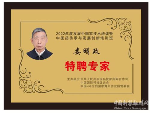 中国新报北京讯(特约记者 颜明俊 )记者从科技部获悉,日前,我国中医名医,贵州省仁怀市中医院原院长娄明政被“科学技术部国际合作司发展中国家技术培训暨中医药传承与发展创新培训班”聘为特聘专家讲师。该项培训由我国科学技术部国际合作司、中国国际科技促进会、中国-阿拉伯国家青年创业园管理委员会联合举办。
