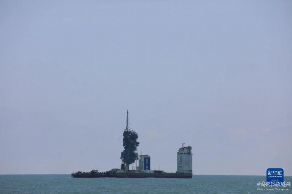 4月30日11时30分,我国在东海海域使用长征十一号海射遥三火箭发射吉林一号高分03D(04~07)/04A卫星,卫星顺利进入预定轨道,发射任务获得圆满成功。新华社发(于吉松 摄)