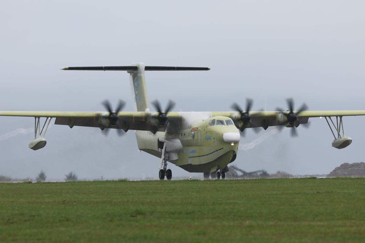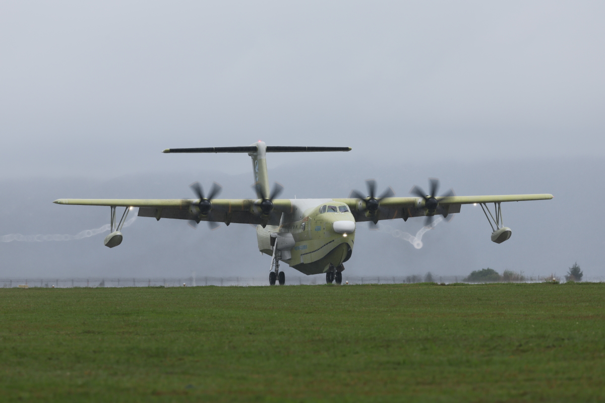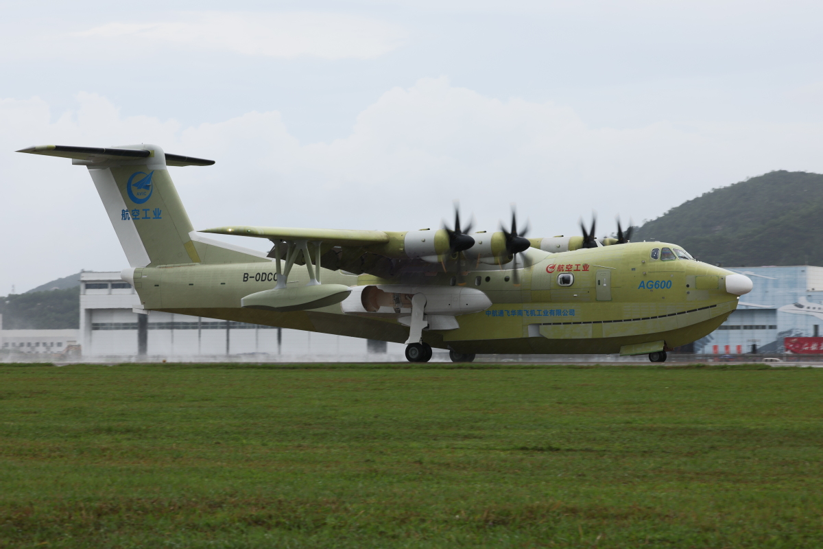 31日上午10:55分,由机长陈明、副驾驶孙康宁等四人组成的首飞机组,驾驶AG600从珠海金湾机场滑行起飞,完成等速爬升、平飞减速、松杆飞行、模拟进场复飞等试飞任务,在空中飞行20分钟后平安降落,飞机状态良好,操纵系统正常,各系统运行稳定。