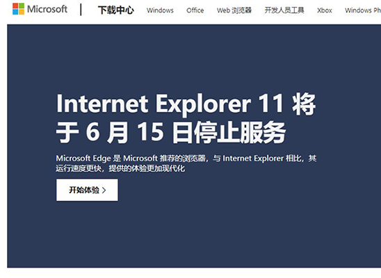 中国网科技6月15日讯 (记者 杨月月)据微软官网信息显示,微软将于美国当地时间6月15日(北京时间16日)永久关闭对“Internet Explorer(IE)”的支持。据介绍,IE浏览器正式下线后,其功能会被Edge浏览器替代。