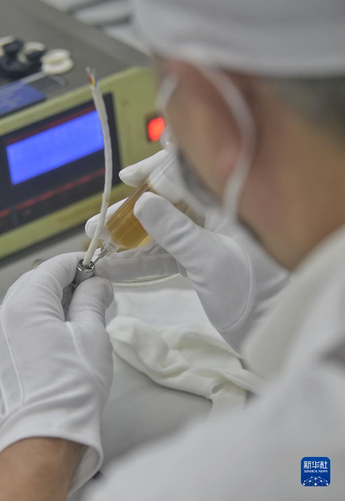 7月14日,杨尹渝在为某型号无污染爆炸螺栓装配打胶。