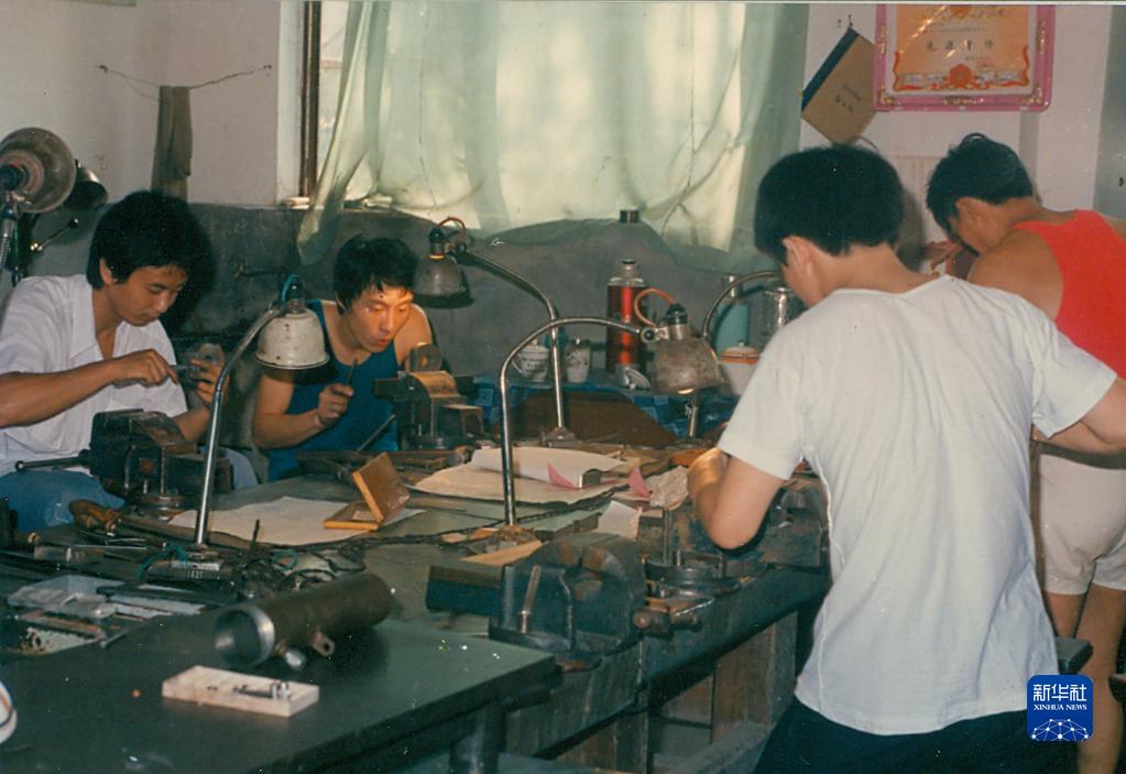 20世纪80年代,杨尹渝(左二)在车间里工作(资料照片)。