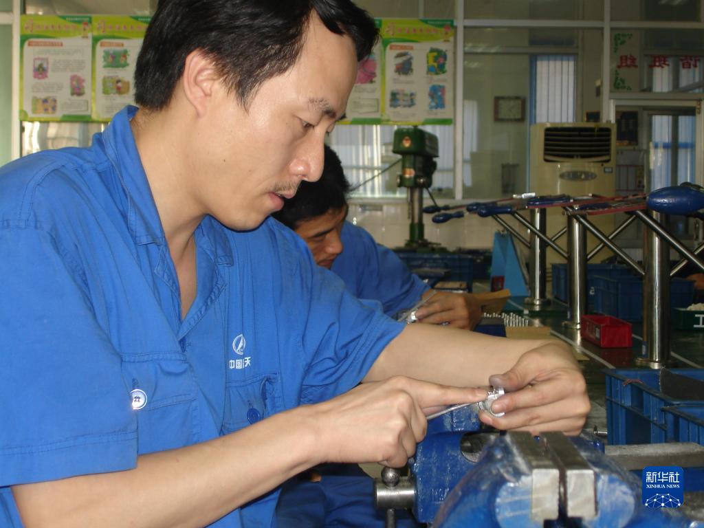 2007年,杨尹渝在车间打磨某型号点火器的壳体(资料照片)。