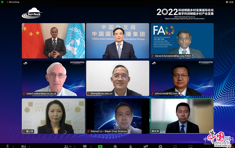 中国网/中国发展门户网讯 11月25日,2022科技赋能乡村发展国际论坛在北京开幕。为期3天的论坛以线上视频会议的形式举行,旨在聚焦并展示数字科技赋能乡村产业发展的创新实用技术和解决方案,推动乡村转型和南南合作知识交流。