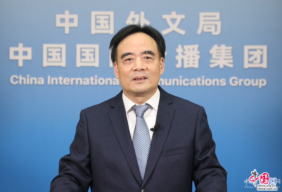 图为联合国发展系统驻华协调员常启德在2022科技赋能乡村发展国际论坛开幕式视频致辞