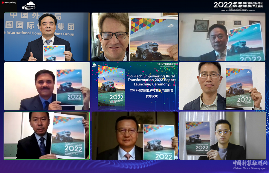 当天,《科技赋能乡村发展2022:数字科技赋能乡村产业发展》专题研究报告在论坛上发布。通过梳理总结科技赋能乡村的发展趋势,挖掘遴选各地涌现出的鲜活案例、典型经验,提炼了科技赋能乡村发展的中国方案,希望通过知识分享推动发展中国家经验交流落地。报告指出,新冠肺炎疫情对各国的粮食安全和农业生产带来很大挑战,中国政府、农业科技和互联网企业在数字技术赋能农业生产、拓展小农价值链、农村数字金融等领域做了许多有益的探索,为发展中国家的农业农村转型带来重大启示。