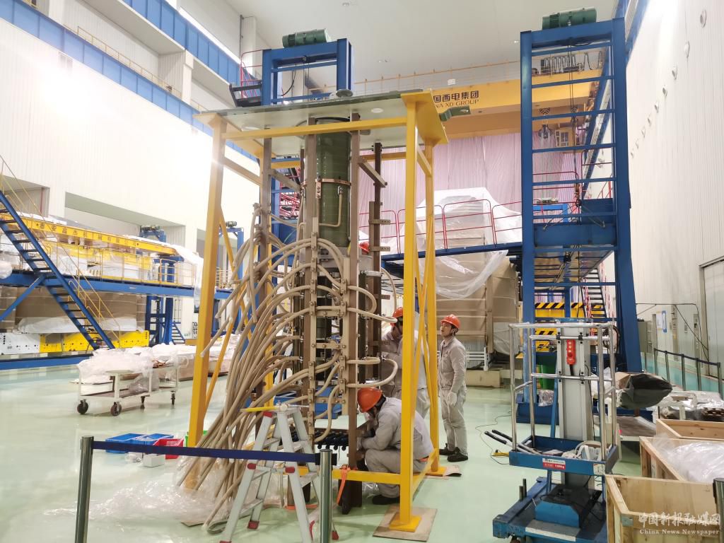 图为换流变压器有载分接开关安装现场。(受访者供图)