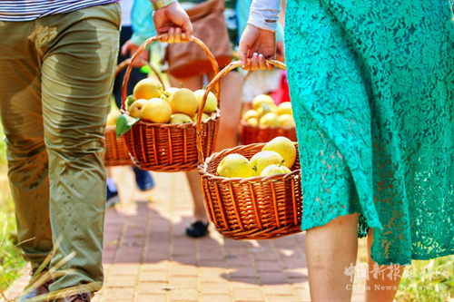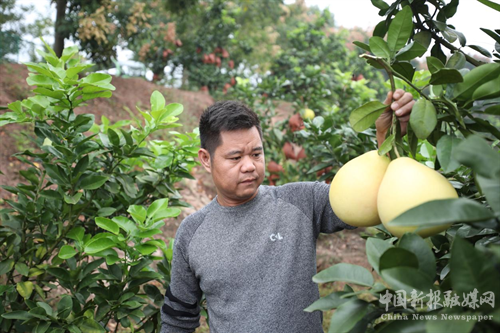 游客在力丰公司三红蜜柚种植基地感受“甜蜜柚惑”。