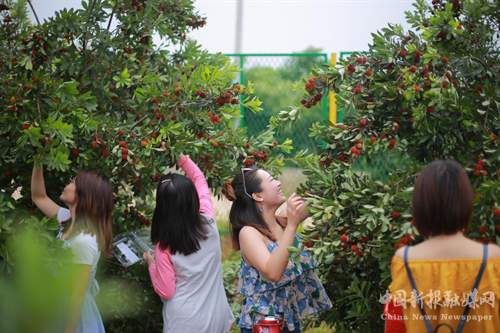 每年7月份,慕名前来采摘、购买金甲脆梨的游客络绎不绝。