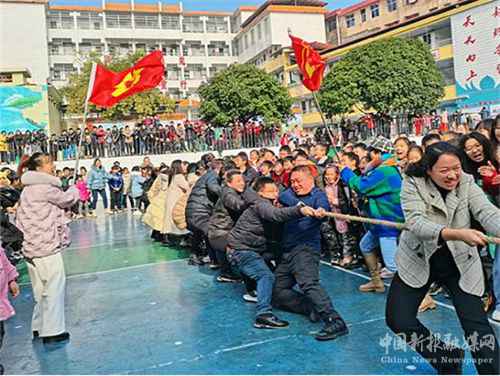 12月31日上午,新田县龙泉一小在操场上开展了“庆元旦”教职工拔河比赛。