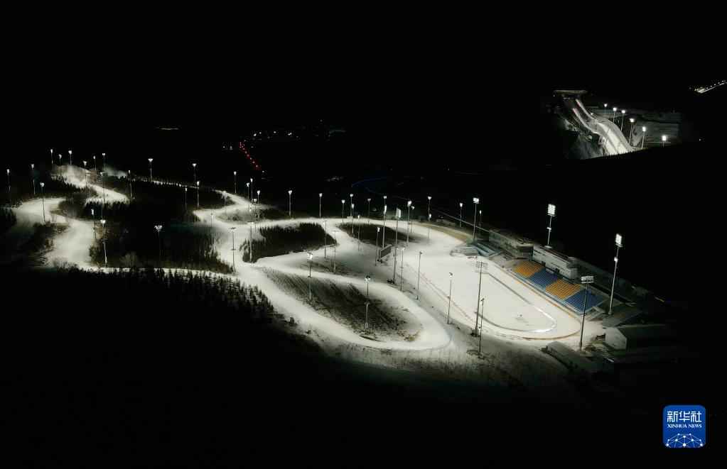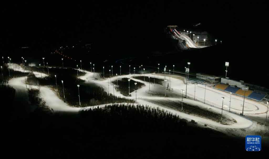 这是2021年12月30日拍摄的国家越野滑雪中心夜景(无人机照片)。新华社记者 杨世尧 摄