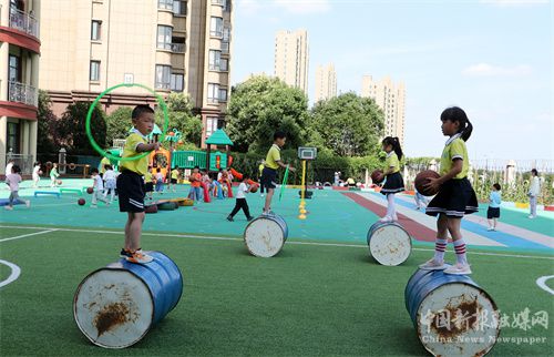 该园积极探索特色户外体育活动,通过丰富多彩的集中户外体育游戏,孩子们既促进了手眼脑、身体的协调发展,又锻炼了平衡能力,培养了团队合作意识及不怕困难的良好品质,在潜移默化中培养运动习惯,深受幼儿及家长们的喜爱。 (巢志斌 摄影报道)