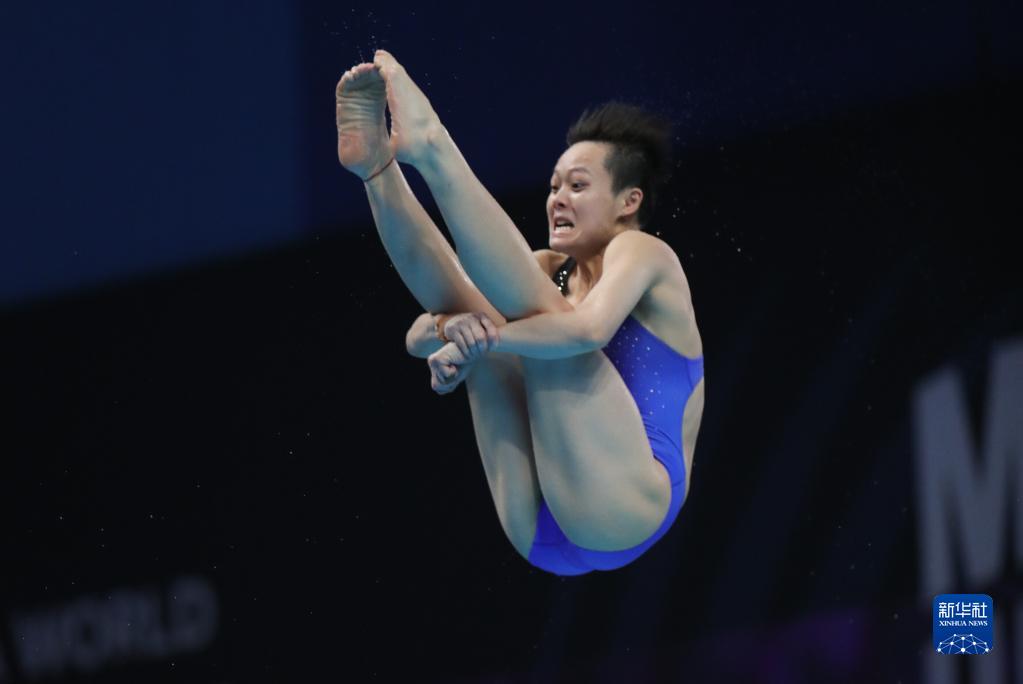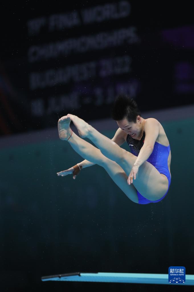 当日,在匈牙利布达佩斯举行的2022年世界游泳锦标赛跳水项目女子3米板决赛中,陈艺文获得冠军。新华社记者郑焕松摄