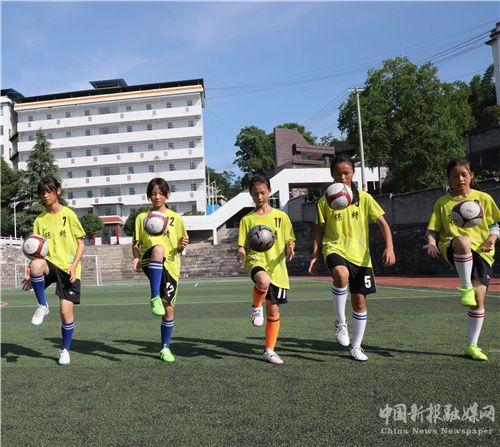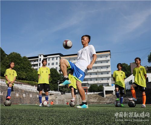 7月14日,在湖南省保靖县毛沟小学,小球员在足球场上训练。近年来,该县大力发展青少年足球运动,利用暑假时间开设足球课堂,吸引孩子们来到绿茵场参与足球训练,享受运动的快乐,丰富暑假生活。(俞采华 陈亚平)