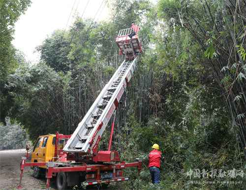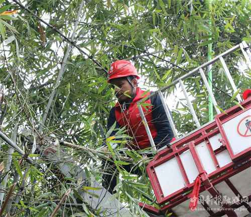 1月13日,国网湖南省保靖供电公司党员服务队对线路下的树木进行修整。随着春节的临近,为了让群众过上一个欢乐、亮堂的节日。连日来,该供电公司组织党员服务队,深入各个乡镇,对威胁电力线路安全的树木、竹子等障碍物进行清理,及时消除安全隐患,确保春节期间电网安全稳定运行。(俞采华 向 阳)