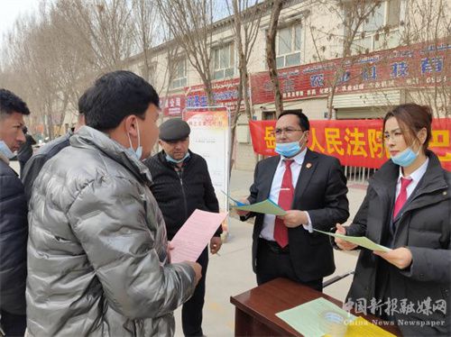 3月5日上午,该院干警在县信用社门口,悬挂宣传横幅、设立法律咨询台,开展“建设法治中国·巾帼在行动”“三八”维权宣传活动,为过往群众发放《民法典》、《妇女权益保障法》、《反家庭暴力法》等法律宣传资料,并采用通俗易懂的语言和一问一答的方式,对《民法典》中的婚姻家庭编、《反家庭暴力法》等内容向前来咨询的群众做了详细讲解,通过以案释法的形式,详细解答了“什么是夫妻关系?“被负债”是否需要共同偿还?离婚时如何分割财产?未成年子女抚养等热点法律问题和合法维权渠道。很多在广场活动的群众听到关于妇女维权方面的知识都驻足聆听,并要求带回宣传资料给家人,让家人也通过宣传资料能够知法、懂法,做一名合格的守法公民。
