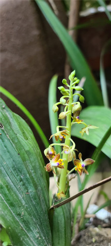 大黄花虾脊兰原产于我国台湾北部和湖南西南部,生长于海拔300米-1500米的山地林下。其叶片硕大、常绿,花序修长,花色金黄,每一朵小花形似一只金色的鸽子。(通讯员 朱忠达 郭应华)