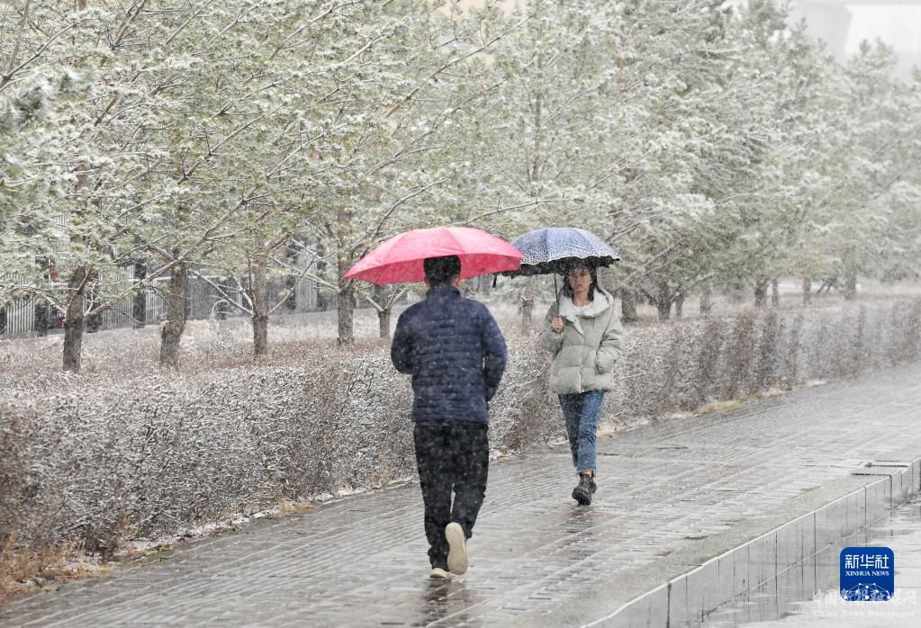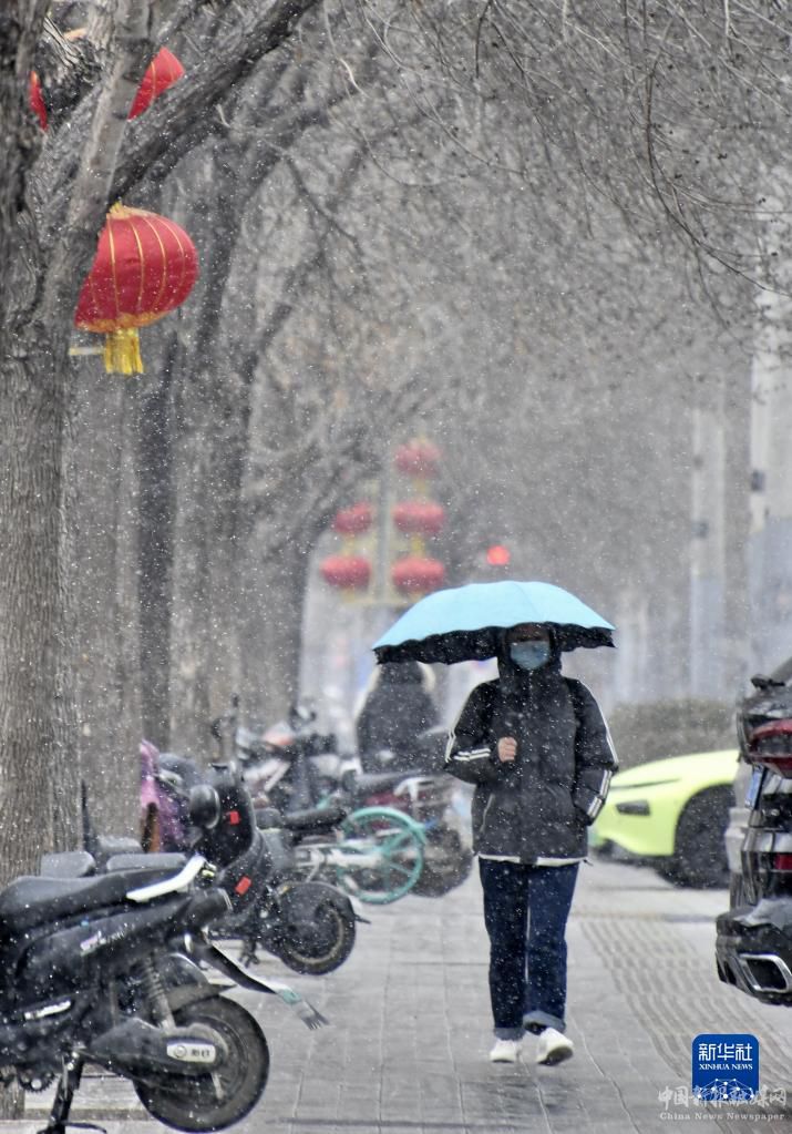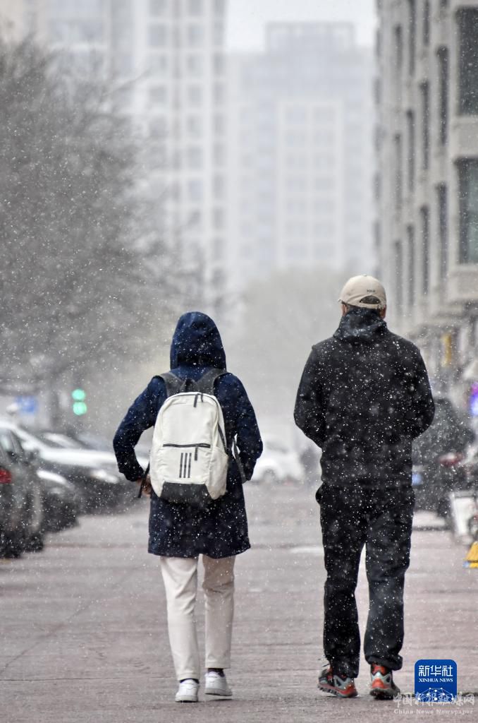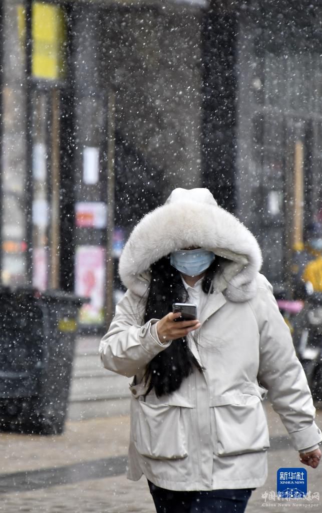 3月17日,市民冒雪在呼和浩特市街头行走。新华社发(王正摄)