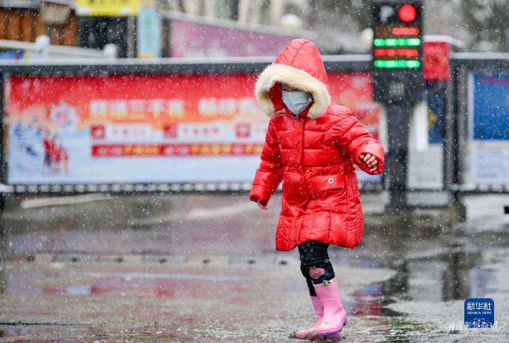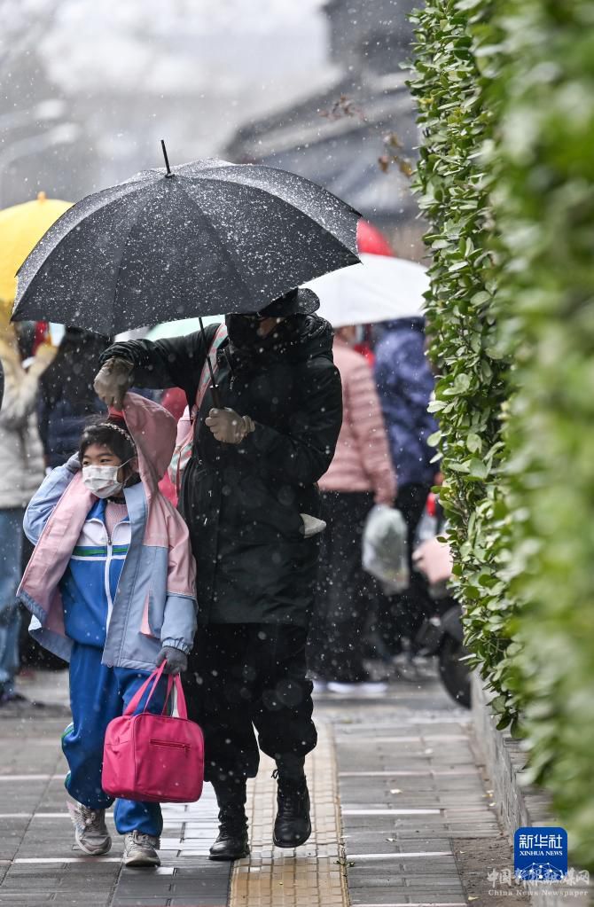 3月17日,小朋友在呼和浩特市街头行走。新华社发(王正摄)