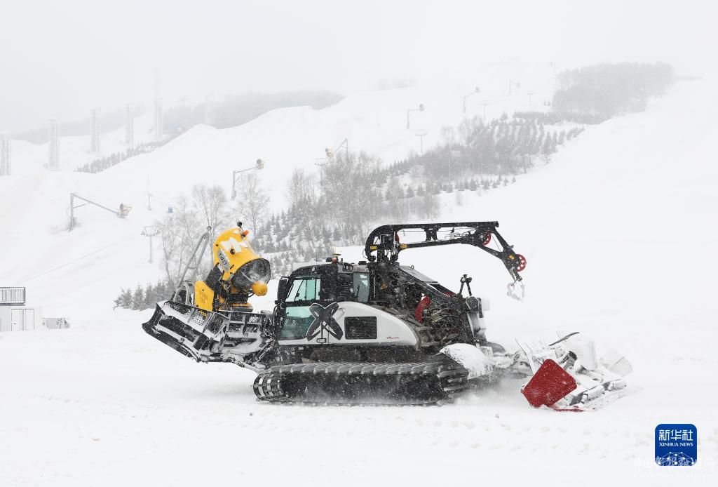 3月17日,一辆压雪机在河北省张家口市崇礼区云顶滑雪公园行驶。新华社发(武殿森摄)