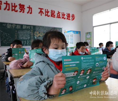 3月23日,湖南省保靖县野竹坪小学的教师在给学生测体温。开学以来,该小学严格落实校园疫情常态化防控,建立“学校、年级、班级、家长”四级防控体系,制定师生晨午检、因病缺勤登记和追踪报告等防疫措施,备足防疫物资,筑牢健康防线。(俞采华 )