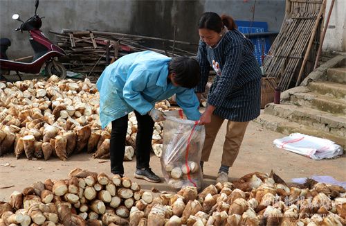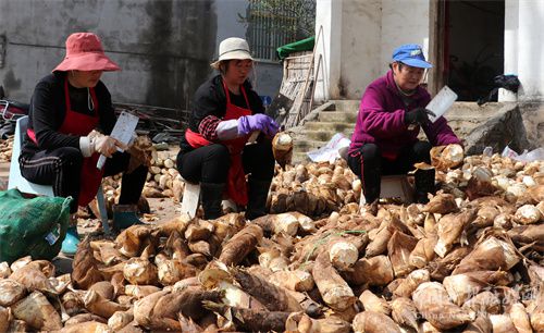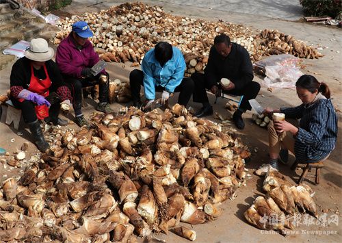 2022年3月24日,安徽省合肥市庐江县龙桥镇凌安村盛夏笋业专业合作社的会员正在消除笋根包装上市供应市场。