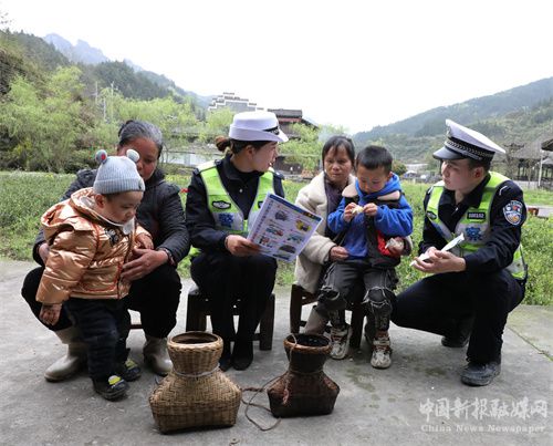 3月27日,在湖南省保靖县吕洞山镇夯吉村,交警给学生讲解交通安全知识。在全国中小学生安全教育日到来之际,该县公安局交警大队组织民警深入中小学校、社区、村头巷尾开展交通安全宣传活动,让学生从小懂得交通安全、自觉遵守交通法规,增强交通安全意识,提高自我保护能力。(俞采华 彭 博)