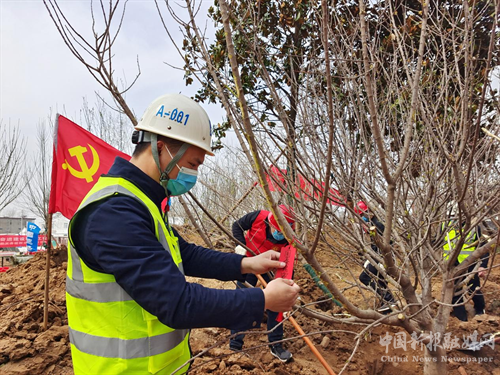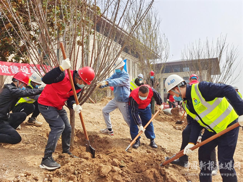 上午10时许,随着机械、工具和树苗陆续到位,党员干部、劳务工友分组开始种树。“你们几个扶苗、我们几个培土、其他同志浇水”,三个组长分别引导党员干部快速植树;在不远处的绿化班组工友组织钩机挖土坑、叉车卸载吊运树苗,组织工人施底肥,......;到下午17时,80余名党员干部、劳务工友共植面积约500平方米,种大叶女贞、紫薇树、腊梅等210余棵。随着一桶桶“连根水”倒下,标志着分配的植树任务完成。党员干部纷纷拿起笔写下美好心愿,表达美好祝福。在许愿卡上写下对祖国、对企业、对家人、对自己的美好祝福,系在树枝上。参加植树的党员干部职工共同祝福祖国国泰民安、人民富足康乐,企业发展蒸蒸日上,向东航MU5735遇难者默哀,愿逝者安息悲剧不再发生,希望升职加薪、早遇良缘,......。