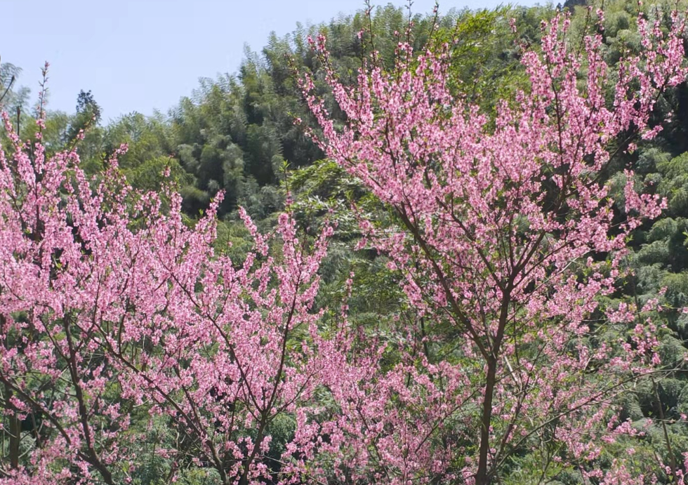阳春三月,百花争艳。日前,记者来到新宁县麻林瑶族乡界富村,感觉空气清新,鸟语花香,乘着撩人春色,桃花、樱花、野梨花、杜鹃花次第开放,漫山红遍,美不胜收!