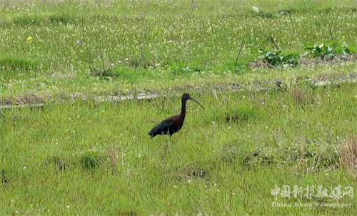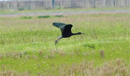 春季,万物萌动,是野生动物活动更加频繁活动的时节,也是野生动植物保护的关键时期。该县林业局加了野生动植物保护力度,增加日常巡护频度。保护人员在巡护时发现,一只黑色大鸟引起了大家的注意。这只鸟长40-50厘米,长长的嘴巴像刀一样向下弯,头部至翅膀基部的羽毛深红褐色,其余羽毛铜黑色。见人类靠近,便藏身稻田的沟里,伸出头机警的张望。随着人们进一步靠近,倏的跳起,快速的鼓动翅膀,一下就飞起来。在飞行中,头颈努力向前伸直,脚也向后伸直,露在尾巴后面。随着翅膀的挥动,羽毛呈现铜绿色的光泽。鸟儿似乎在挑逗人们,飞行一段距离后,停止了翅膀的鼓动,滑翔着打个弯,潇洒的落在远处的田里,回头朝人们望了一眼,悠闲的踱着步伐。