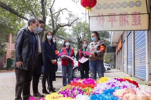 地上的鲜花寄托对先人的哀思,手中的传单饱含对居民的关怀。