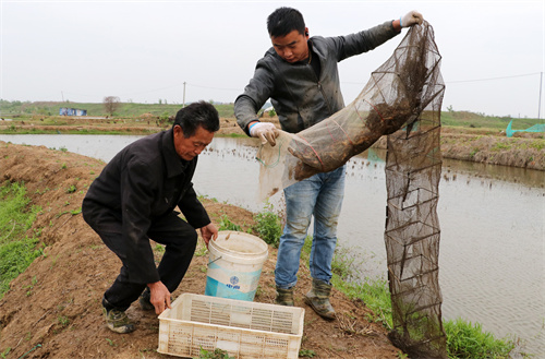 近年来,庐江县依托河湖水域优势,利用水网湿地众多、水质充足良好的特点,以“党支部+公司+农业合作社+农户”的方式,发展“稻虾鱼”共作模式进行生态种养,减少化肥、农药施用量50%以上,有效改善了生态环境,增加了经济效益。截止目前,全县发展“稻虾鱼”共作面积达16.6万亩,从事稻渔综合种养合作经济组织120个,大户700多户,初步实现了“1313”目标,即亩产优质稻1000斤、小龙虾300斤,实现亩产值1万元、效益3000元。(特约记者 巢志斌 摄影报道)