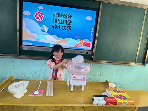 棉花糖是大家非常喜爱的零食,香香甜甜的棉花糖甚至是几代人心中对于童年最美好的回忆。为了满足孩子的好奇心,使孩子们更清楚的了解棉花糖的制作过程,亲自体验做棉花糖的快乐,孩子们在江西省上饶市广信区石人乡童坞小学老师的组织下,开展了民间传统手工艺进校园,制作棉花糖的活动。孩子们通过自己的劳动,自己亲手制作出棉花糖,教室里充满着欢乐,这温暖的气氛和甜甜的香味飘出了教室……