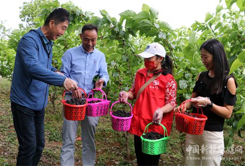 当地青年农民黄义勇、王卫勤夫妇从浙江农科院引进无籽大果、台湾长果、大白珍珠3个优良桑葚品种进行种植,面积20亩。在种植过程中,他们严格按照技术标准进行养护,全部采用人工除草,追求纯天然原生态的绿色食品品质。今年为第三年挂果,亩产鲜果可望获得600多公斤以上,亩收入超过1.5万元。 (特约记者 巢志斌 摄影报道)