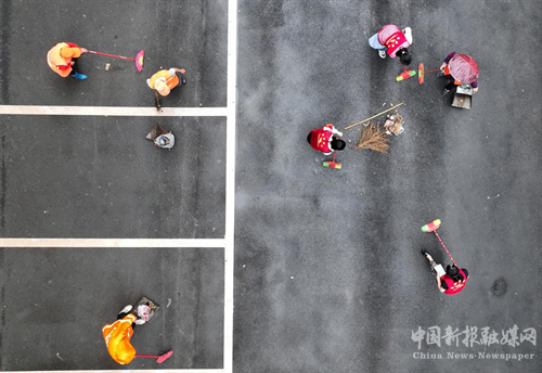 社区志愿者在清洁辖区卫生。