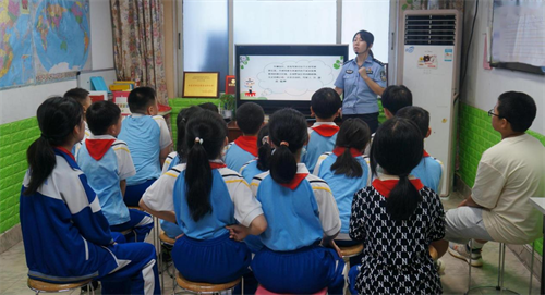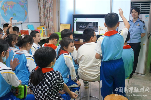 2022年5月31日中午12:05分,长沙市公安局交通警察支队处罚教育科新闻中心许申警官在办公室匆匆吃了几口同事帮忙打包的饭菜,紧急而又认真地处理好了手头新来的任务,立马赶往岳麓区学堂坡社区至厚善楼单元栋,利用午休时间为聚集在这里等候的孩子们送上了一堂生动有趣的《知风险 会避险》交通安全课。