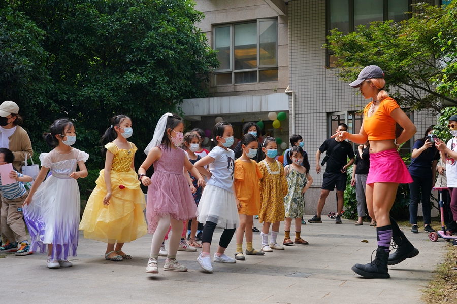 5月31日,上海市长宁区今日丽园小区,小朋友们参与邻里游园会。中国日报记者 高尔强 摄