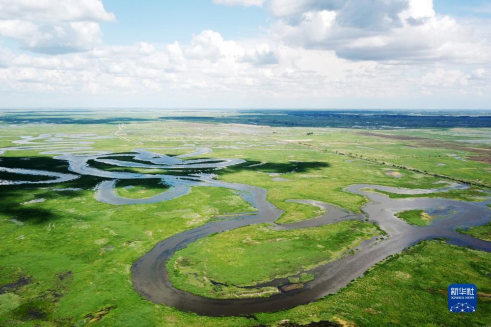 这是6月16日拍摄的黑龙江乌裕尔河国家级自然保护区的湿地景观(无人机照片)。新华社记者 王建威 摄