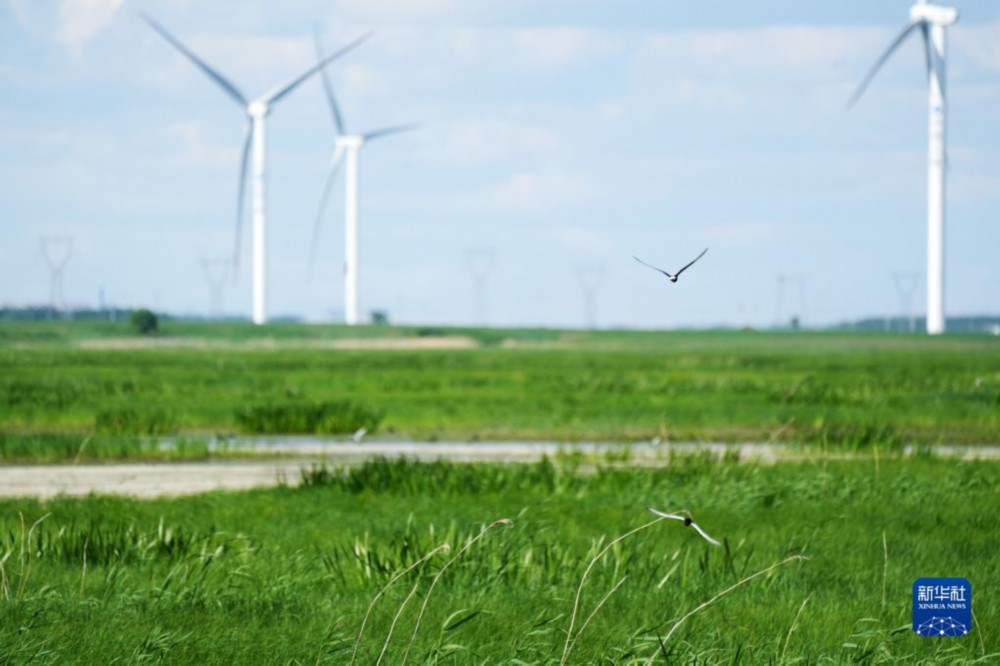 6月16日,鸟儿在黑龙江乌裕尔河国家级自然保护区飞翔。新华社记者 王建威 摄