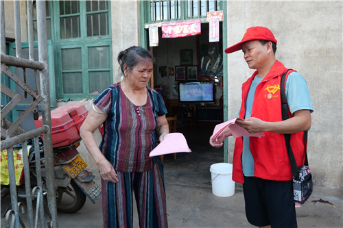 “各位叔侄、家长、亲戚、朋友们,请注意啦!现在天气非常炎热,正是小孩子想去河里游泳的时候,又正是暑假期间,暑假期间是青少年溺水事故的高发期,请各位家长、叔侄、亲戚朋友,一定要监护好自己的孩子,一定要让孩子远离水库、池塘、河流或者水沟、坑等危险地方,千万不能让孩子在有水的地方打闹玩耍,更不可以私自下河游泳,坚决预防溺水事故的发生,要教育好孩子,要有防溺水的意识,安全第一,珍惜生命!”7月10日,在湖南省宜章县黄沙镇沙坪村,一名身穿红马夹头戴红帽子的中年人肩上挂着手提喇叭手里拿着宣传资料行走在村道巷道流动循环播放防溺水内容,向群众宣传防溺水知识,告知家长落实好监管责任,劝导青少年不要下河游泳。