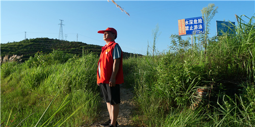 这名中年“防溺水”宣传志愿者叫李万红,中共党员,今年48岁,黄沙镇福寿寺小学教师,原户籍是黄沙镇沙坪村人,热衷于公益事业,2018年5月起加入宜章县好人协会,2018年至今任宜章县好人协会黄沙镇分会副会长。学校放暑假后,为加强防溺水安全教育,预防暑期溺水事故的发生,李万红便反复思考着如何在假期充分进行防溺水宣传教育,便自己编写了一段防溺水宣传的文字,在网上购买了手提喇叭,配上接地气的方言,录制成了音频。7月10日上午8点多,李万红从黄沙镇福寿寺小学拿了些“防溺水”宣传资料,将手提喇叭挂在身上,行走在沙坪村的村道巷道及该村公共场所、村民聚集处进行流动循环播放防溺水内容,开展防溺水宣传教育。同时,李万红还入户上门及向过往的群众发放防溺水宣传资料,巡查山塘、水库、河道、沟渠、洞坑等危险水域。在李万红老师的带领下,沙坪村好人工作站的成员也主动加入了防溺水宣传的队伍。当天,李万红跟沙坪村好人工作站的成员一起共发放防溺水宣传资料200余份。