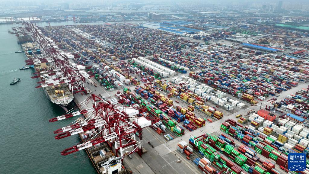 繁忙的山东港口青岛港前湾集装箱码头(7月29日摄,无人机照片)。