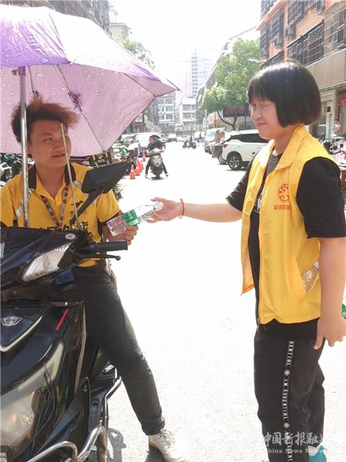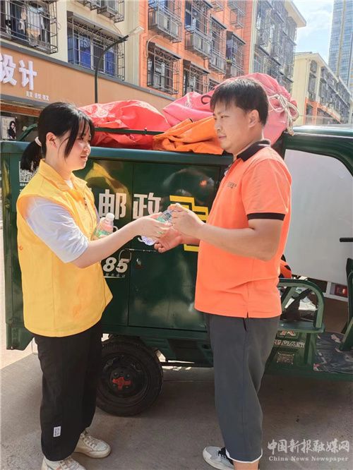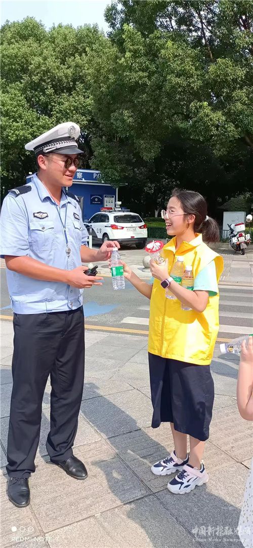 “我们还只是走路送了一会水,整个人身上全都是汗,又热又累。更不要说那些整天都在高温炙烤下工作的人们有多么热了,因此我觉得在这么热的天气之下,我们能为他们送上一瓶冰凉的水,这真的是一件非常有意义的事情。”活动结束后,任奕璇同学对刘嫜妍同学说。(特约记者 刘露)
