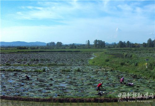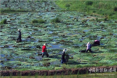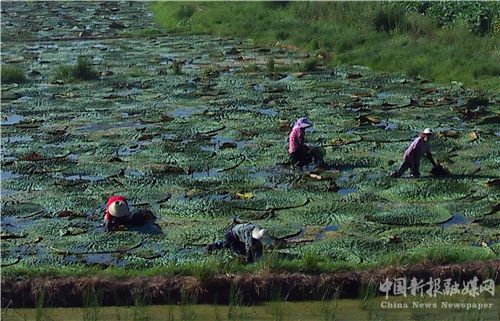 芡实俗名“鸡头米”,不仅美味可以食用,而且还具有药用价值,市场十分亲睐。庐江县根据市场需求,合理调整种植结构,大力扶持种植户发展生态芡实,目前规模已经发展到将近1万亩。芡实平均亩产可达40公斤以上,每亩可实现产值6000元,仅此一项该镇农民每年可进账6000万元。 (巢志斌 摄)
