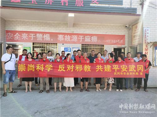 为有效提高群众反邪、防邪、拒邪的思想意识,增强群众自觉抵制邪教侵蚀的能力,倡导传播文明、崇尚科学的良好风气,8月8日上午,武冈市农业农村局志愿者在玉屏村开展“崇尚科学、反对邪教、共建平安武冈”的反邪教宣传活动。