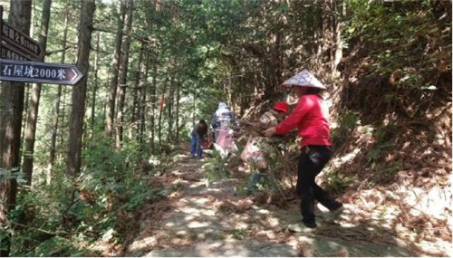 8月12日,农历七月半,休宁县汪村镇岭脚村民组留守在家的男女老少40余人参加平鼻岭古道的义务拔草修路,将凉亭翻盖、疏通了水沟、清理了杂草。