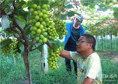 宋超从有机肥、农家肥入手,着力打造60亩生态有机葡萄种植,亩产新鲜葡萄1500多公斤,亩产值达3万余元。他以“党支部+基地+农户”的模式,带动周边10多户村民、6户低收入群众就近就业增加收入,户均年最低增收2万多元。 (巢志斌 摄影报道)