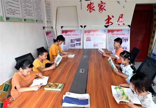 8月24日,湖南省隆回县金石桥镇黄金井村农家书屋内学生正在看书写作业。暑假期间,该镇31个村(社区)农家书屋全天候开放,让留守儿童根据自己的需求,到农家书屋阅读书籍、写作业,丰富知识,快乐度暑假,真正让农家书屋成为留守儿童的“精神粮仓”和“快乐港湾”。(贺上升摄)