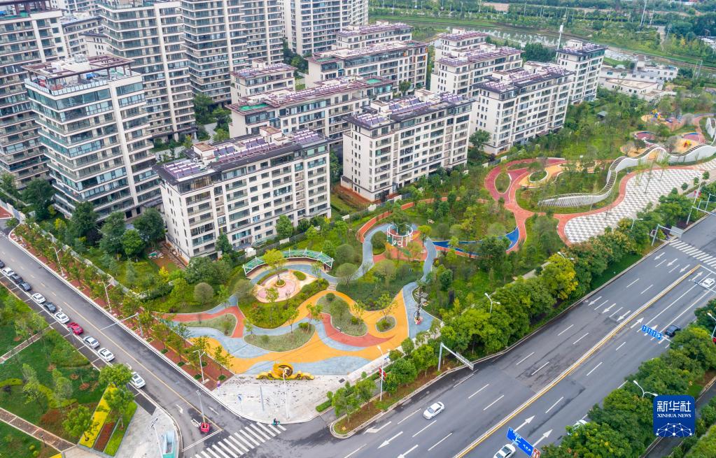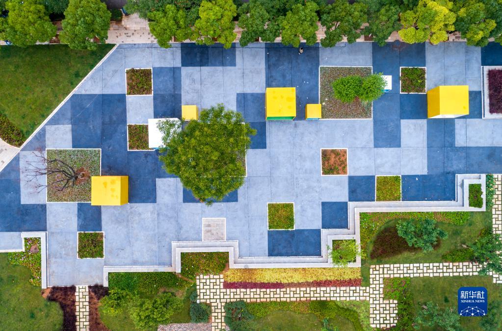 月1日拍摄的昆明金科江湖海小游园一景(无人机照片)。
